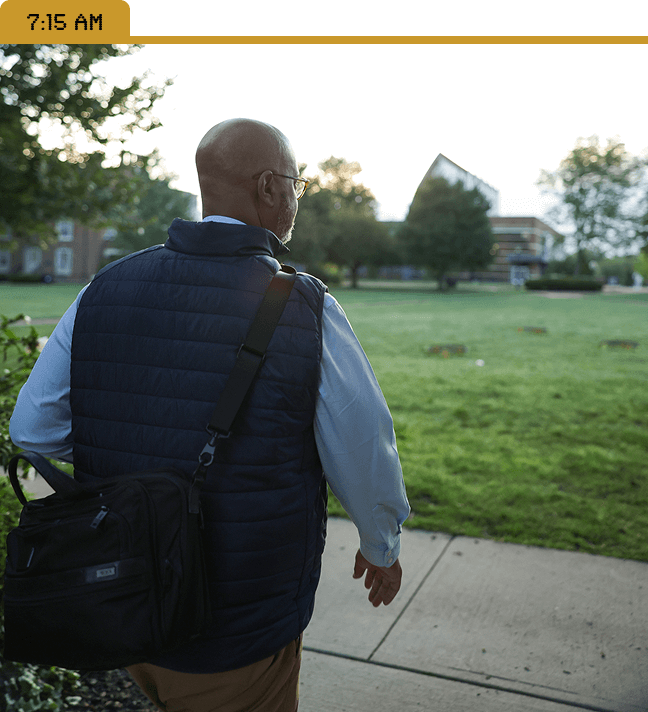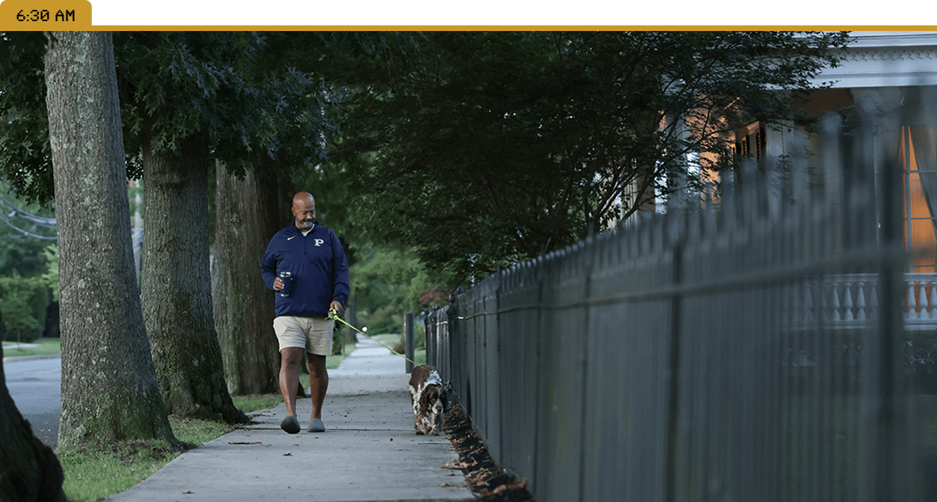 Most mornings, Hamilton walks Coco, his English Springer Spaniel, around campus at dawn. “I’ll think, ‘How lucky am I to be here, in a place this beautiful, with tradition and hopes.’ I love those moments before the campus comes awake.”